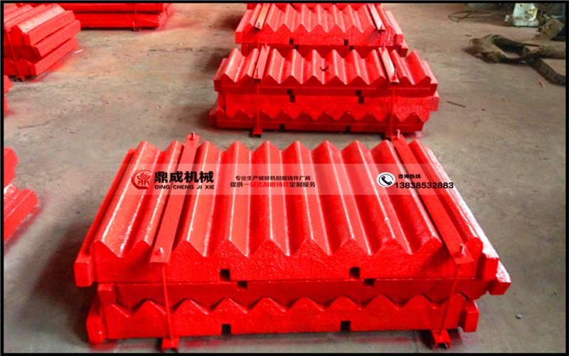 顎式破碎機應(yīng)用領(lǐng)域廣泛,因其規(guī)格大小、進料低度、物料硬度不同,對顎板的擠壓、撞擊力不同。鼎成機械主要供應(yīng)標準以及定制顎板,主要材質(zhì)為錳鉻合金,耐磨程度高,經(jīng)久耐用,深受廣大客戶好評。